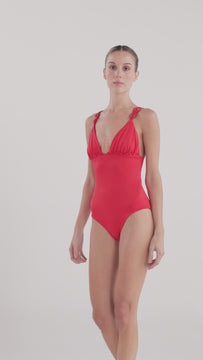 This elegant red one-piece swimsuit combines timeless design with a flattering fit, enhancing your silhouette with subtle sophistication. Crafted to offer both style and comfort, it is perfect for making a refined statement at the beach or poolside. The rich red hue adds an element of boldness while maintaining a classic allure.