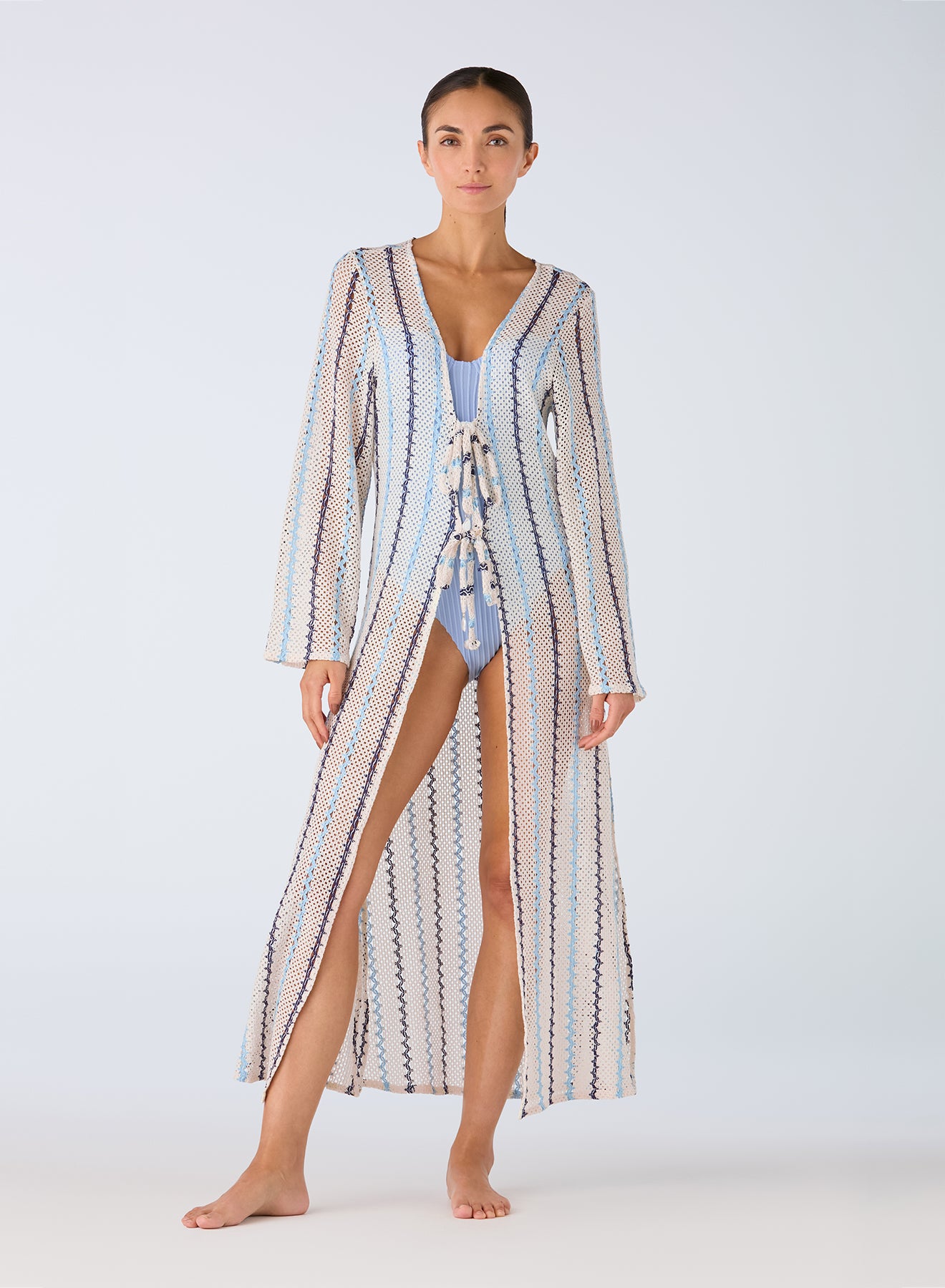 Effortless layering meets timeless style with the Uda Cover Up in light blue. Perfect for beach days, poolside lounging, or casual outings, this versatile piece drapes beautifully over swimwear or summer dresses. The soft, breathable fabric keeps you comfortable in warm weather while the relaxed fit flatters every body type. Lightweight and easy to pack, it's your go-to essential for sun protection with understated elegance.